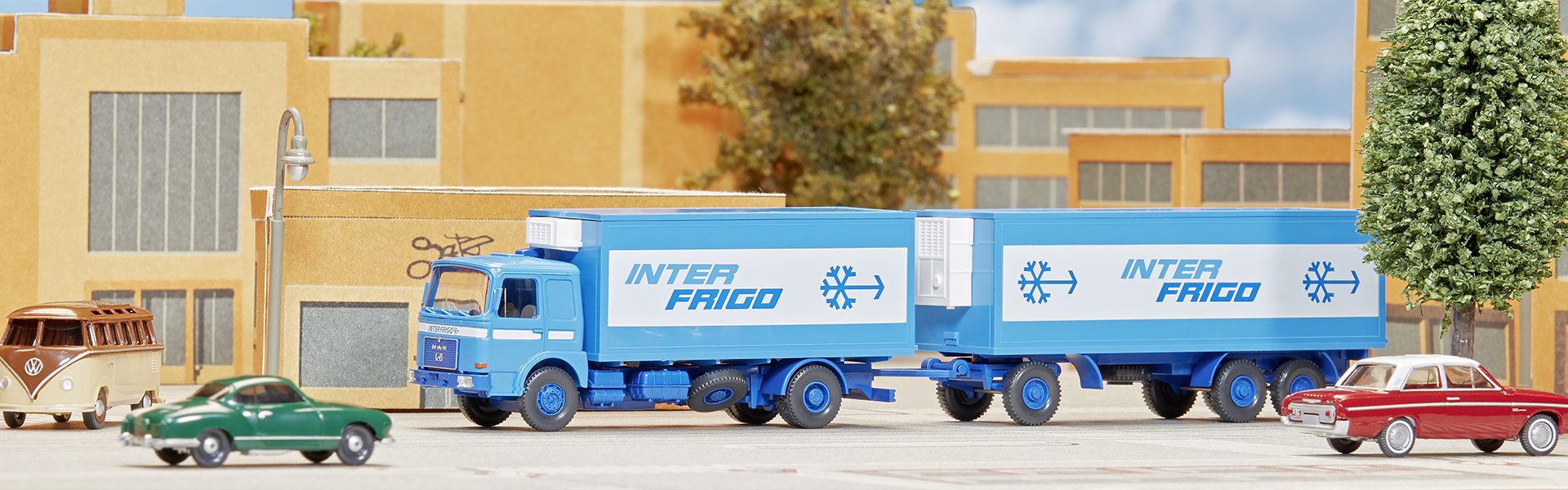 Interfrigo used to ensure that the cooling chain remained intact over long distances – employing an MAN refrigerated road train draped in the same company colours as the automotive extension of the railway transport. By including this new model in their June delivery WIKING is sharing a major piece of railway history from a time when the continuous cooling chain was in the hands of Europe’s railways. And, this is exactly where the name Interfrigo originated. Model railroaders are only too familiar with the significance held by the ubiquitous H0 wagons, which the traditional model makers are now pairing with a lorry of the same name. This pairing is well-warranted given the fact that Europe’s railway companies in the years after the war were entrusted with the task of hauling easily perishable fruits and other goods to their destination without disrupting the cooling chain – a growing market! A job that crossed the borders in Europe. To share the burden, all activities in the refrigerated transport business were coordinated as early as 1949 when the “Société Ferroviaire Internationale de Transports Frigorifiques“, Interfrigo for short, was founded as a joint umbrella organisation. From then on, several thousand wagons criss-crossed Europe for decades bearing the grand Interfrigo logo. The first countries to join with their railway administrations were Belgium (SNCB), Great Britain (BR), France (SNCF), Italy (FS), the Netherlands (NS), and Switzerland (SBB).